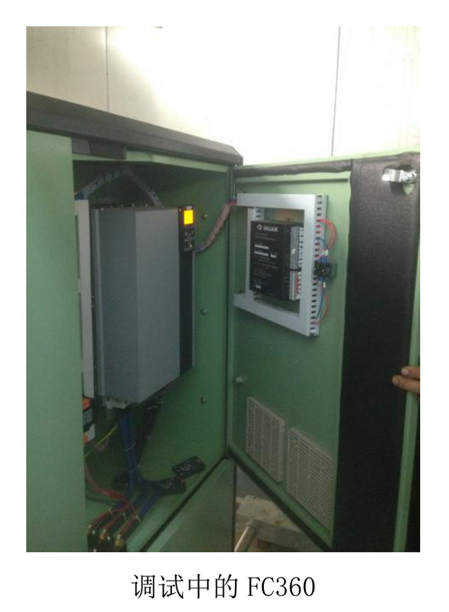 以上兩張圖片是我司在佛山某空壓機應(yīng)用現(xiàn)場所拍,我司的技術(shù)工程師正在調(diào)試FC360變頻器??諌簷C變頻調(diào)速控制原理是電動機拖動空氣壓縮機旋轉(zhuǎn),使之產(chǎn)生壓縮空氣,并存儲于儲氣罐中。儲氣罐中空氣壓力的大小取決于空氣壓縮機產(chǎn)生壓縮空氣的能力(本系統(tǒng)中即取決于電動機的轉(zhuǎn)速)和用戶用氣量之間的平衡狀況,為了保證供氣質(zhì)量,要求儲氣罐空氣壓力穩(wěn)定在某一數(shù)值上。儲氣罐內(nèi)的壓力為被控量,壓力變送器將儲氣罐的壓力變換成電信號送給變頻器PID單元,與壓力給定值進行比較,PID能單元根據(jù)比較所得偏差的大小和方向按預(yù)定的 PID 運算規(guī)律運算后產(chǎn)生控制信號改變變頻器的輸出,從而改變電動機的轉(zhuǎn)速,使儲氣罐內(nèi)的實際壓力始終維持在給定值上。