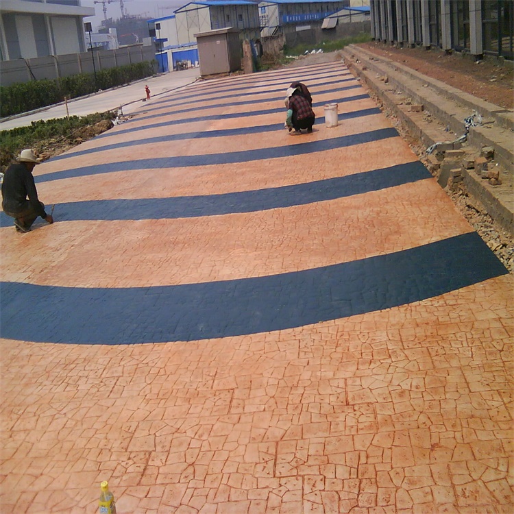 4.彩色脫模粉處理:施工的表面均勻拋撒彩色脫模粉,將整個表面覆蓋,同時在模具的表面也上一些脫模粉;
