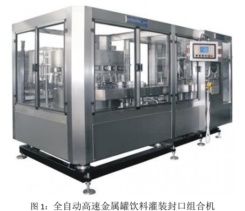 該設(shè)備是目前國內(nèi)生產(chǎn)能力高、智能化控制程度先進(jìn)的灌裝封口組合設(shè)備(如圖 1);廣泛應(yīng)用于金屬罐包裝的果蔬汁、涼茶等飲料產(chǎn)品的自動(dòng)化高速包裝,集灌裝、封罐于一體。主要有如下幾方面特征: