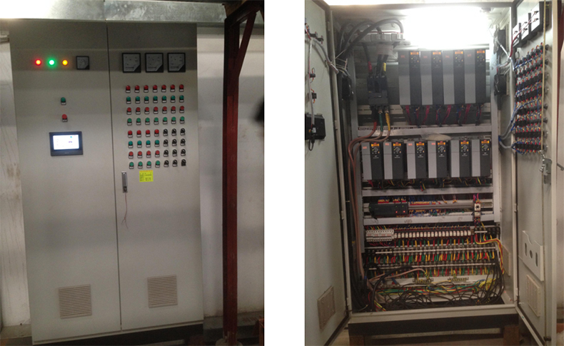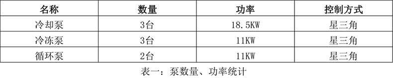 該系統(tǒng)設(shè)計之初,均沒有考慮冷卻泵、冷凍泵、循環(huán)泵采用變頻控制(如下表1),而是采用傳統(tǒng)的星三角啟動方式(舊電柜見下圖1),根據(jù)對系統(tǒng)運行工藝的觀察,泵總功率110.5KW,電能浪費嚴(yán)重,存在較大的節(jié)能空間。