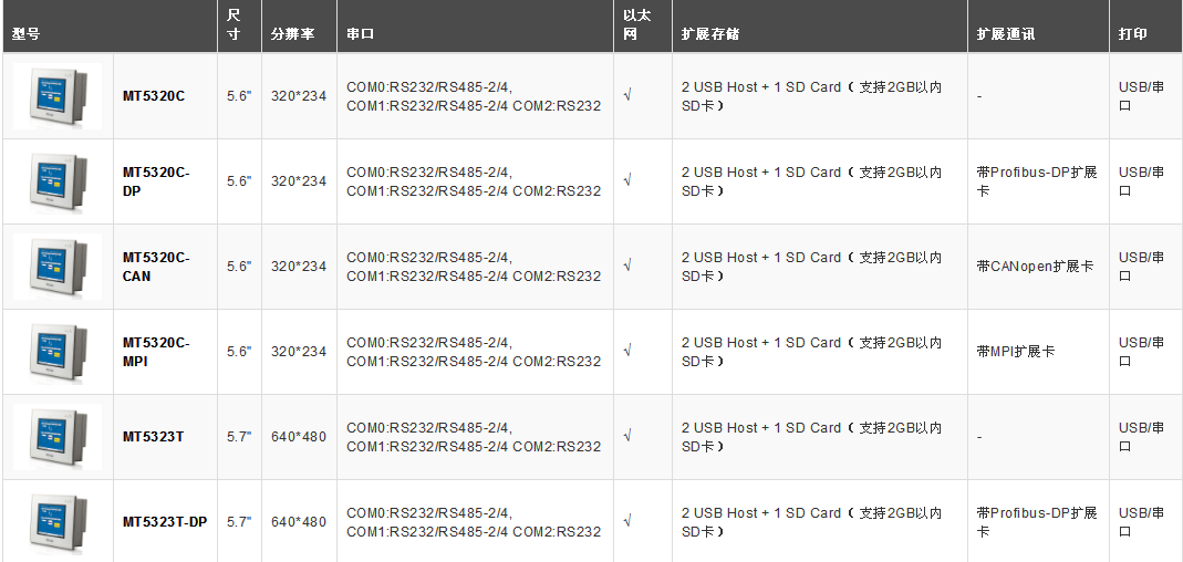 MT5000系列人機(jī)界面是步科電氣根據(jù)高端市場需求推出的一款高端總線型人機(jī)界面產(chǎn)品,采用性能強大的intel PXA270 520MHz處理器和精簡高效的LINUX操作系統(tǒng),超強的運行性能奠定了其在工業(yè)人機(jī)界面領(lǐng)域的卓越地位。除了超群的處理速度外,MT5020人機(jī)界面還集成了當(dāng)前工業(yè)控制領(lǐng)域非常流行的工業(yè)現(xiàn)場總線通訊―Profibus-DP\CAN總線,使你的機(jī)械設(shè)備能夠輕松融入工廠自動化網(wǎng)絡(luò),享受現(xiàn)場總線給您帶來的飛一般的速度體驗。