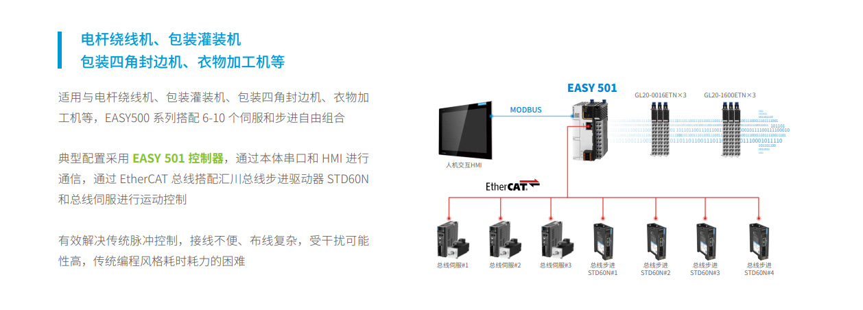 匯川EASY系列全場景緊湊型中小型控制器全系列8個機型,滿足用戶對中小型自動化設(shè)備各種需求,適用于嚴苛體積、多軸運控、溫度控制、通信組網(wǎng)等場景。機身模塊化設(shè)計,支持擴展卡和模塊擴展,精準適配各類場合,完美適配特定需求,避免資源浪費。本地集成多種工業(yè)網(wǎng)絡(luò)通信協(xié)議,輕松對接數(shù)據(jù)采集系統(tǒng)和周邊設(shè)備。完全自主化的編程軟件,持續(xù)迭代易用性功能,符合工程師應(yīng)用習慣,更易用。 “易”如反掌,應(yīng)“景”而生,革新的設(shè)計理念,來源于真實的使用場景,來源于真實的用戶“痛點”。