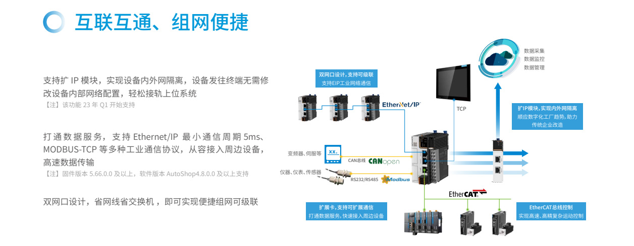 易實現(xiàn)運動控制、過程控制易選型、易擴展易互聯(lián)、易組網(wǎng)易編程、模塊化易交付、100%核心器件國產(chǎn)化